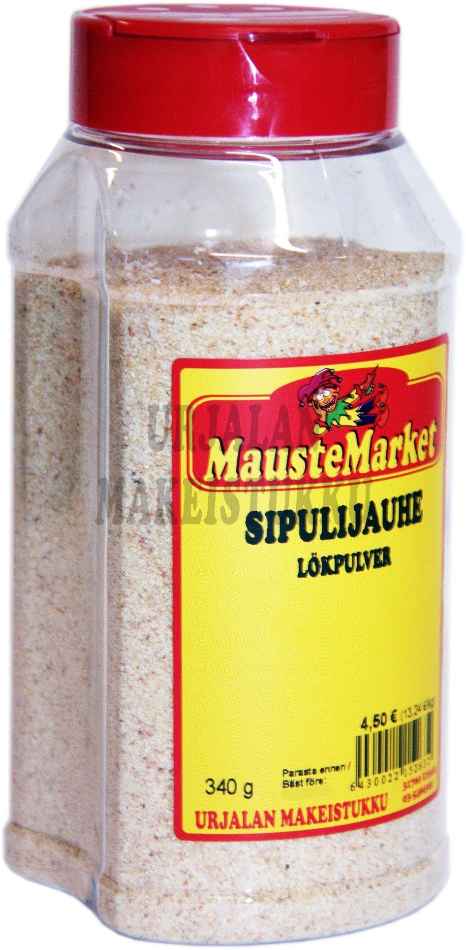 Sipulijauhe 340g purkissa. Annostus: Yksi iso teelusikallinen jauhetta vastaa yhtä sipulia.