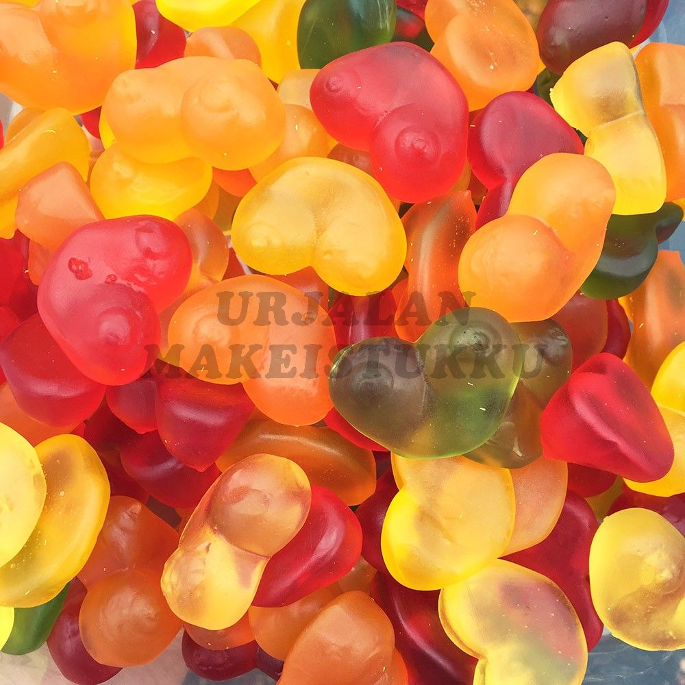Ainesosat: glukoosisiirappi, sokeri, liivate, happamuudensäätöaine: sitruunahappo, väriaineet: E100, E120, E141, aromit, kasviöljyt (kookos), pintakäsittelyaine (karnaubavaha).